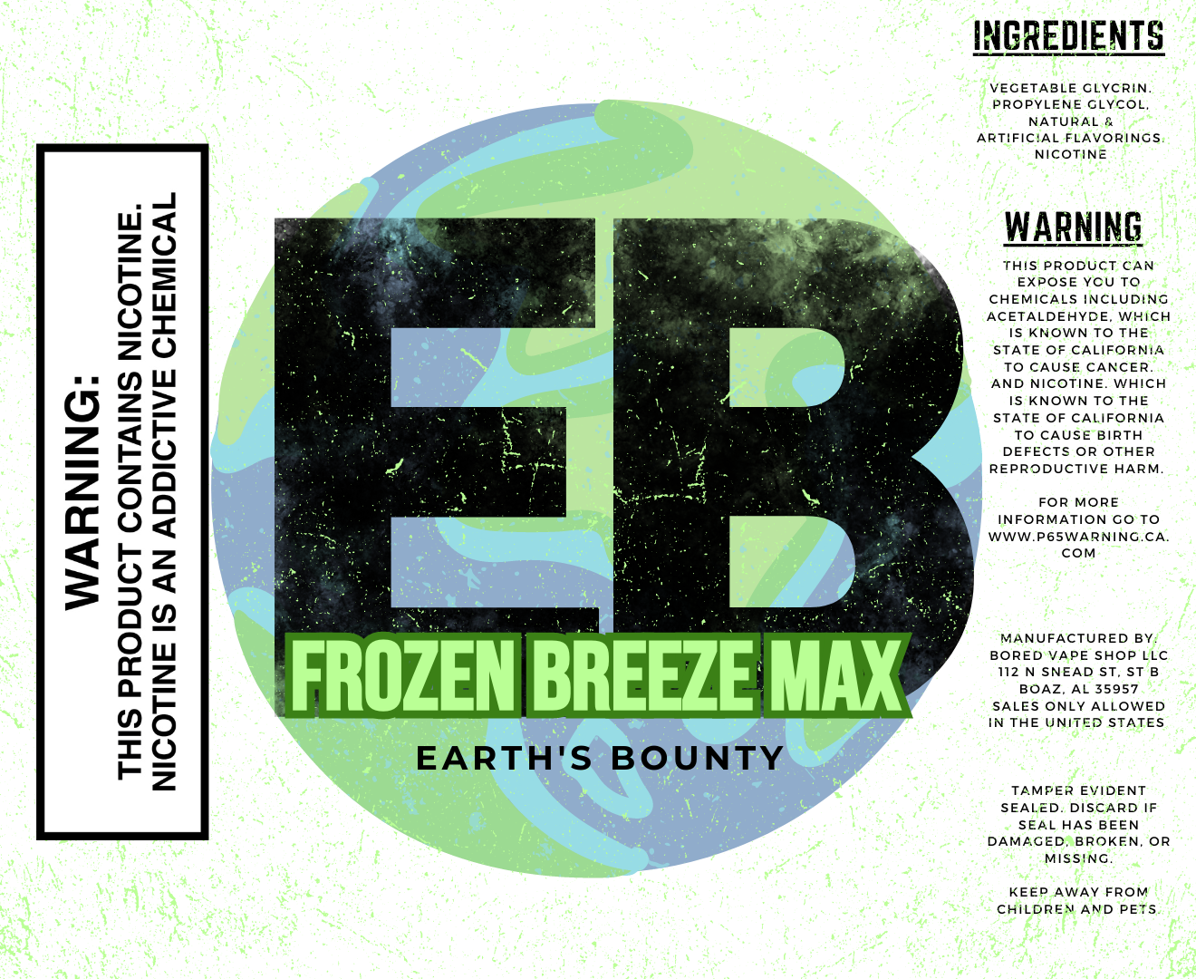 Frozen Breeze Max offers a cool and invigorating vaping experience with its delightful blend of menthol-infused watermelon, strawberry, and a touch of raspberry. Indulge in the icy sensation as the sweet and juicy notes of watermelon and strawberry intertwine with the subtle tartness of raspberry, creating a harmonious symphony of flavors that will leave you feeling revitalized. Immerse yourself in the icy freshness of Frozen Breeze Max and explore the exceptional taste sensations offered by Earth's Bounty.